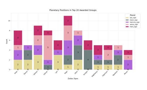 This project became my journey from basic code understanding to uncovering fascinating cosmic patterns in the data. My goal wasn’t to build the most technically advanced notebook. It was to tell a story. I wanted to use the notebook to highlight the astrological findings from my dataset, things like Sun and Moon sign patterns, generational planetary trends, and how elements or specific planetary placements might relate to a group’s success.